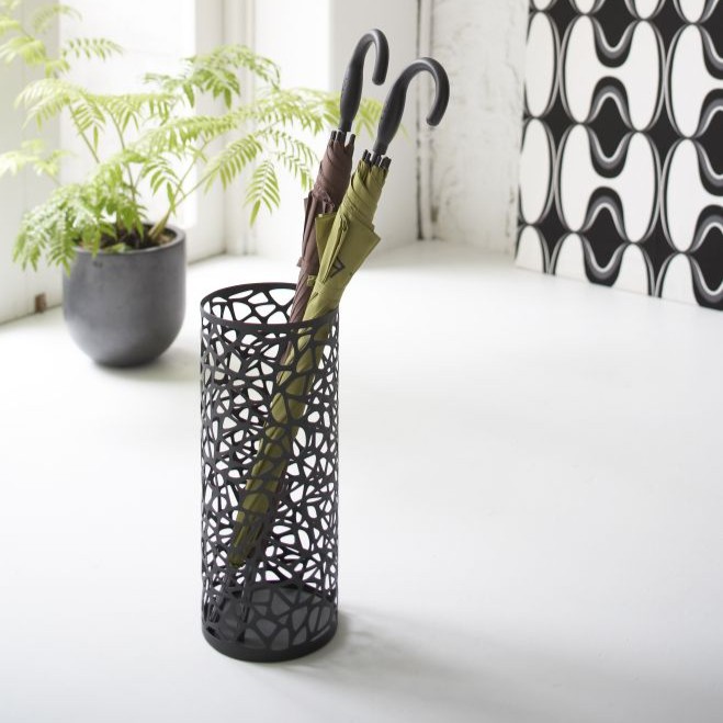 метал като ажурната поставка за чадъри на YAMAZAKI. Към тях добавете декоративни предмети