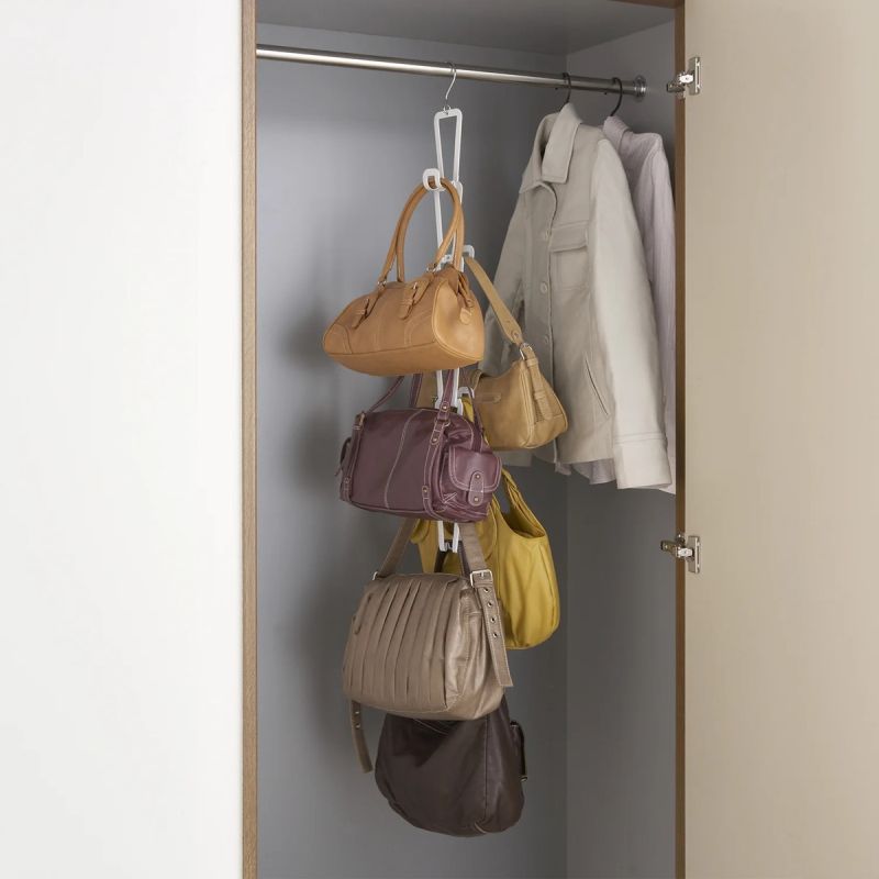 Най-добрият начин за съхранение на чанти. Може да виси в гардероба, да се закачи на врата или да се завинти в стена. Компонентите са подвижни, така че можете да персонализирате размера.