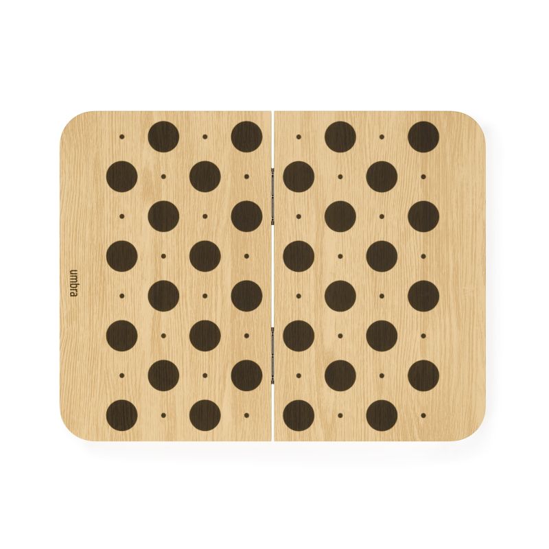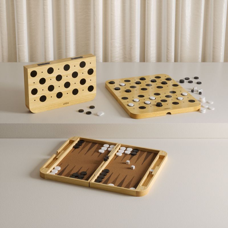 Таблата Blitz обединява две вечни класики – дама и табла – в изискан и съвременен дизайн. Вдъхновена от плавните линии на колекцията Bellwood на Umbra, тя се сгъва удобно наполовина, което я прави лесна за съхранение, пренасяне или елегантно излагане, когато не се използва.